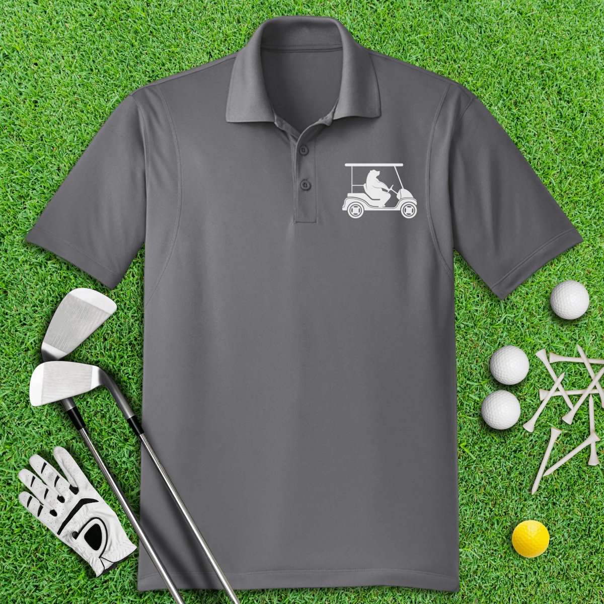 Funny Bear Driving Golf Cart Icon Polo Shirt