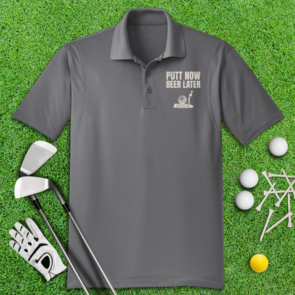 Putt Now Beer Later Funny Polo Shirt