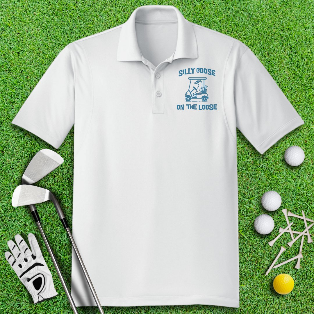 Elevate your golf style with the Silly Goose on the Loose Golf Polo Shirt! Featuring a fun cartoon goose cruising in a golf cart with sunglasses, this polo brings a lighthearted and unique twist to traditional golf apparel. Perfect for golfers who enjoy a playful approach to the game, this breathable and comfortable polo is ideal for both a casual round on the course or a laid-back day with friends. Add a little humor to your swing with this must-have golf shirt!