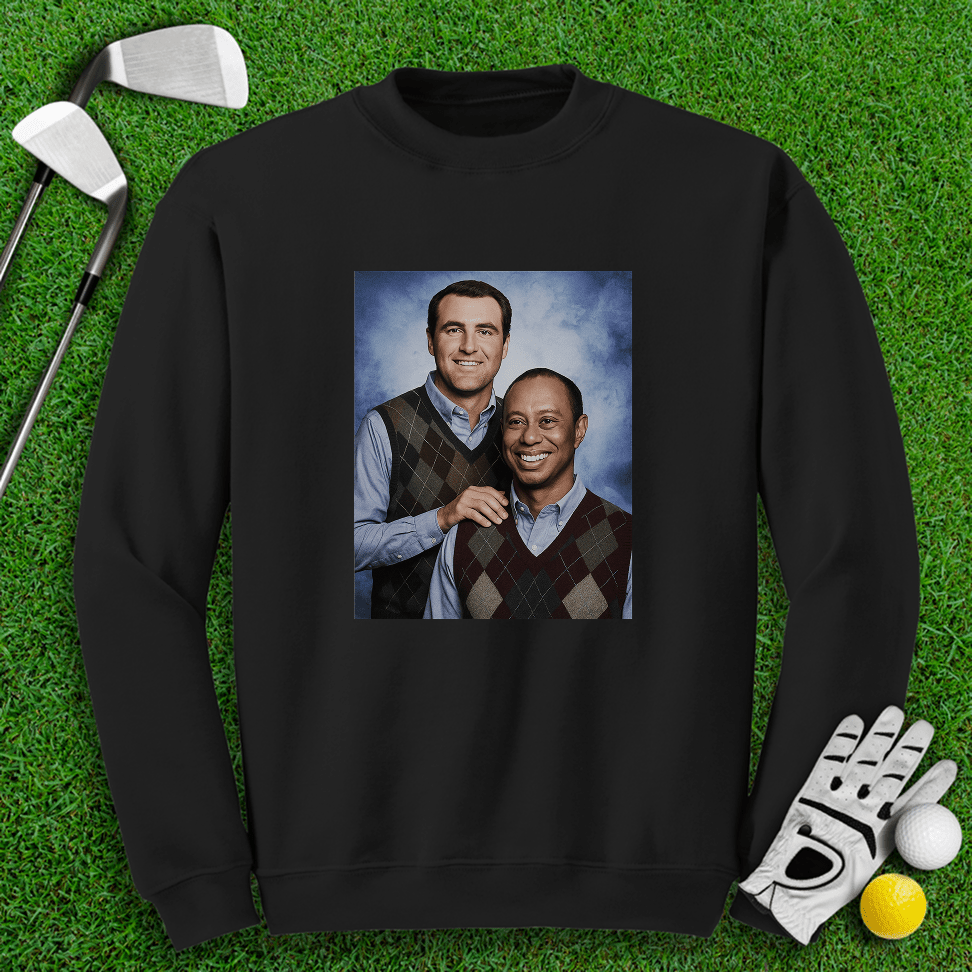 Tiger Woods and Scottie Scheffler, but make it Step Brothers. This sweatshirt mashes up the iconic comedy poster with two of golf’s biggest names, striking that awkward-yet-legendary pose you didn’t know you needed. Perfect for golf fans who love a good laugh, a little nostalgia, and a lot of swagger.